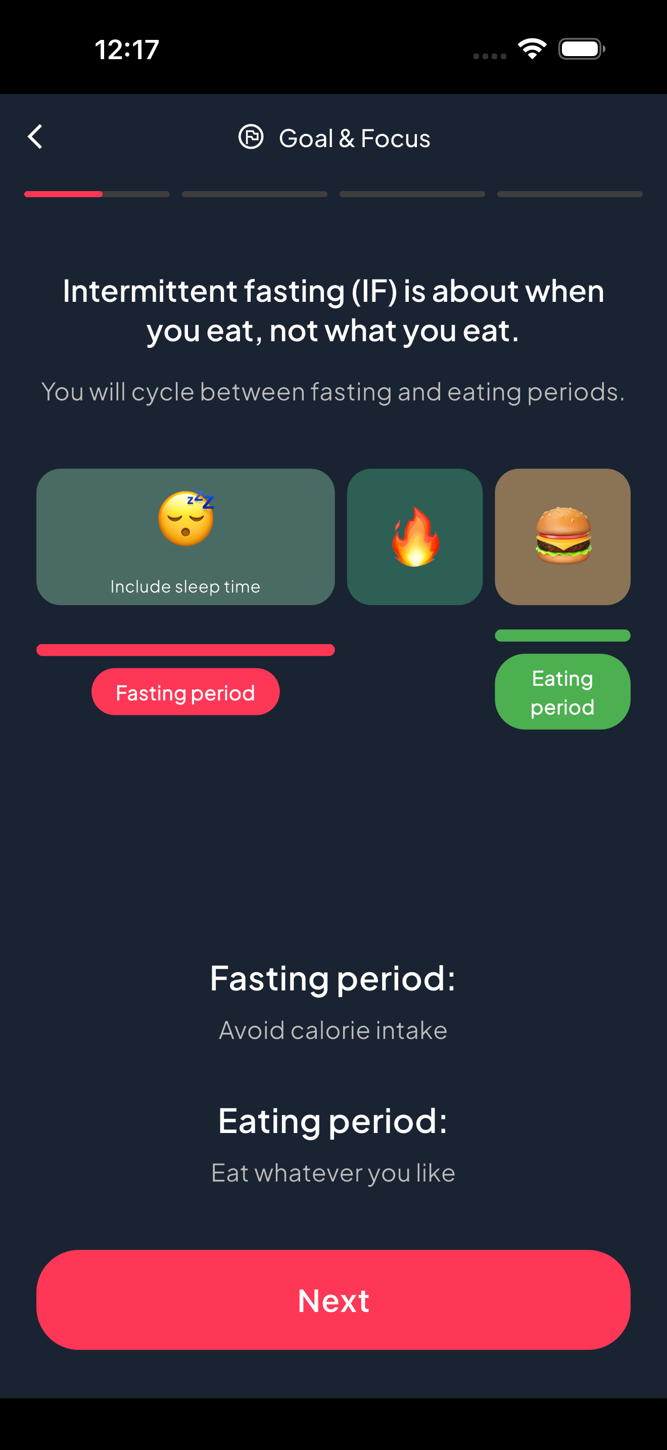 Customizable fasting windows that adapt to your schedule and notify you when to eat.
